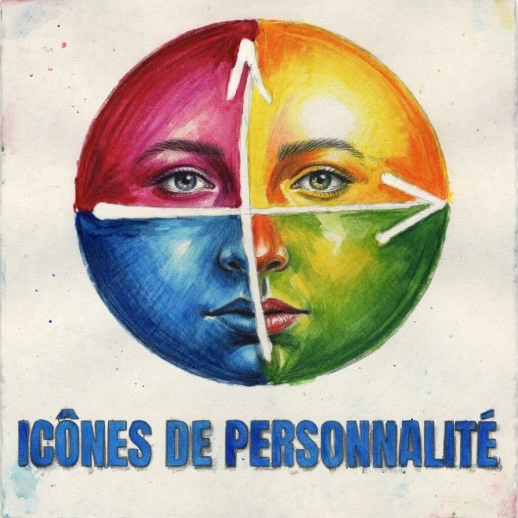 résume: "Les couleurs sont utilisées comme codes visuels simples, facilitant l'identification rapide de traits de personnalité ou de modes de communication. Cela rend les concepts psychologiques concrets et mémorisables pour tous, quelque soit leur âge ou leur niveau d'éducation."